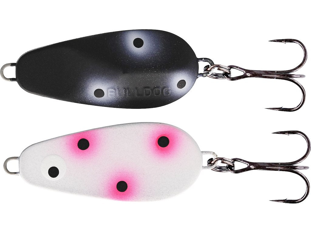 Bulldog er et helt unikt put and take blink, der fisker exceptionelt godt i mange forskellige situationer. Bulldog er designet og udviklet af Ole Gregersen, som har formået at designe et lille kompakt blink, der kaster som et missil, skærer godt i vinden og slår aggressivt i vandet, hvilket er uimodståeligt for ørreden. Alle, der regelmæssigt fisker P&T, ved, at ørreden elsker slow-spinning, og med Bulldogs unikke køl bevæger den sig præcis, som den skal, på trods af dens kompakte udseende. Hvis fisken er gået dybere i søerne, ville Bulldog også være en klar favorit og vores absolutte 1. valg til fiskeri dybere end 1 meter.